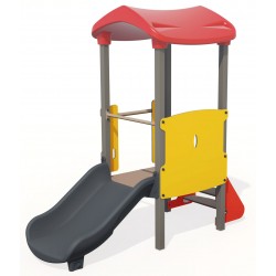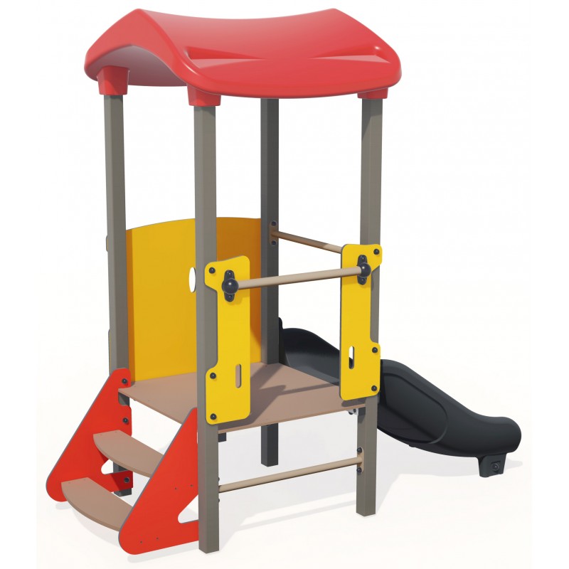 Voir toutes les caractéristiquesL'abri des bambins est une maisonnette ludique idéale pour les tout-petits. Elle se compose d'un toboggan, d'une petite échelle à grimper et d'un toit pour s'y abriter. Sur la structure, les enfants peuvent grimper, se cacher et glisser, favorisant leur développement moteur. Les panneaux HPL et la structure métallique garantissent la durabilité du produit.